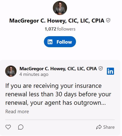 Had a great experience working with Mac Howey as our insurance broker. Mac's dedication and professionalism in finding a creative and competitive insurance policy for our hotel were truly impressive. His expertise and attention to detail exceeded our expectations, and he took the time to listen to our concerns and needs.
